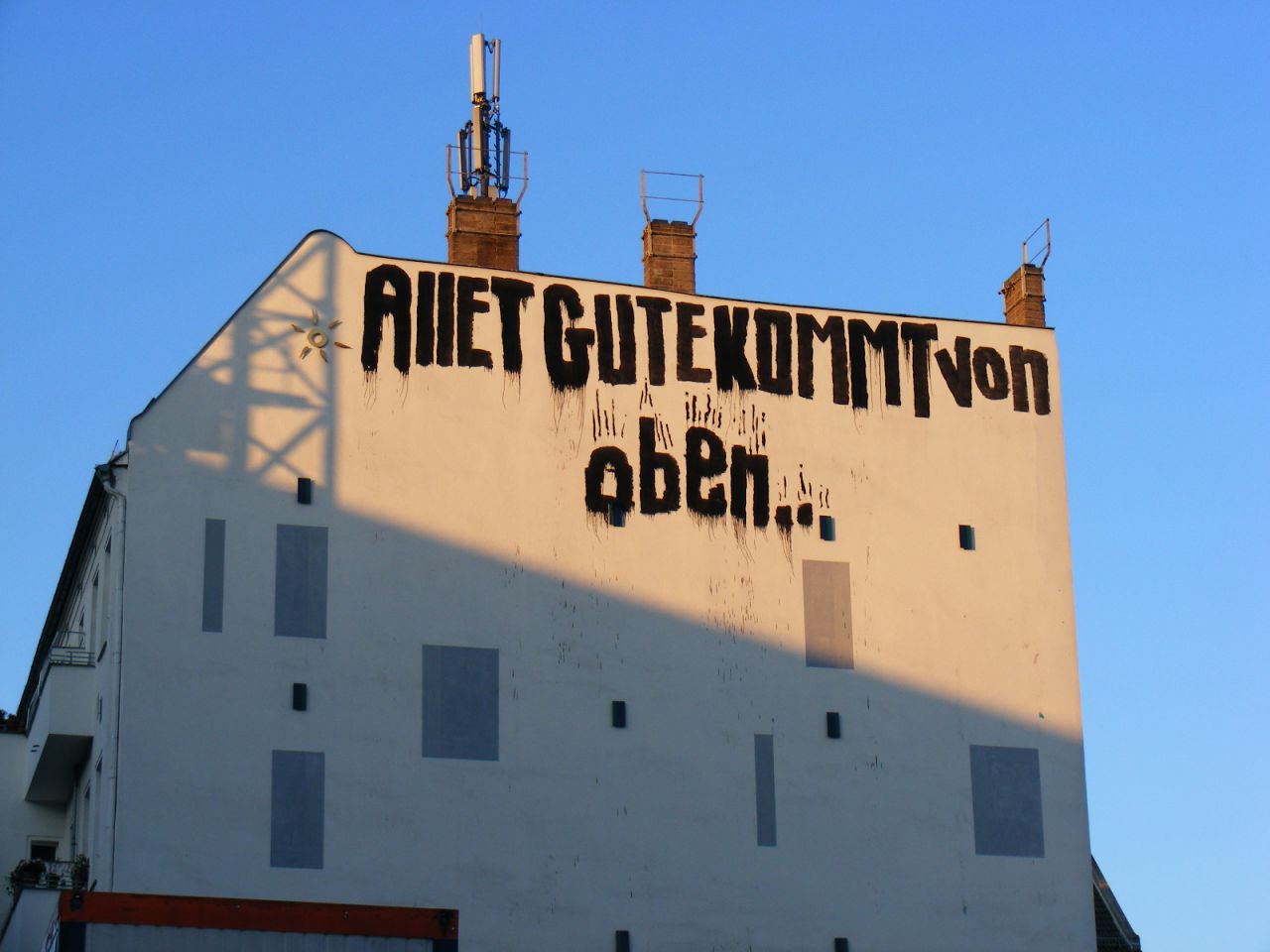 Im Dezember 2007 war das Grundstück in der Kopenhagener Straße 18 im Berliner Prenzlauer Berg noch nicht bebaut. Dadurch konnte man ein nettes Graffiti an der östlichen Hauswand des Gebäudes Kopenhagener Straße 19 sehen.