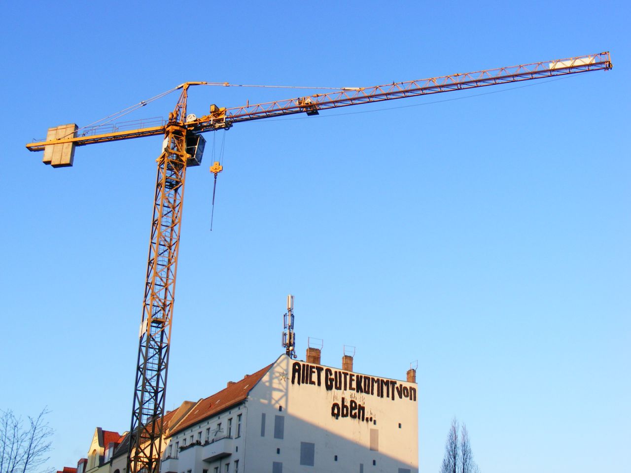 Auf dem zweiten Foto dieser kleinen Reihe sieht man dann bereits den Baukran. Die Wiederbebauung des Grundstückes Kopenhagener Straße 18 begann. Das Grundstück Kopenhagener Straße 17 sollte noch lange Zeit danach nur provisorisch genutzt werden.