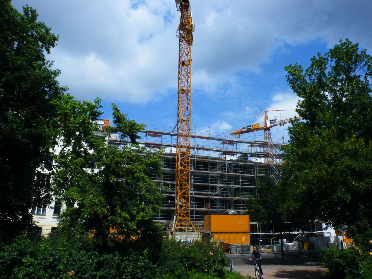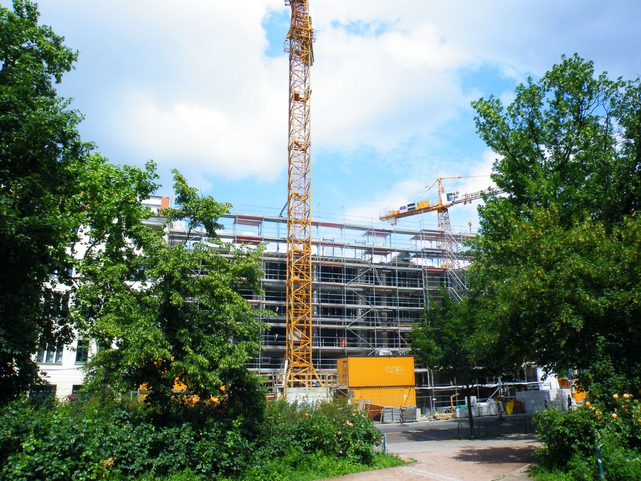 Im Mai 2009 ist der Rohbau des Gebäudes in der Gleimstraße 50 bereits weit vorangeschritten. Das Informationsschild, das Auskunft über das Bauprojekt gibt, ist allerdings verschwunden.