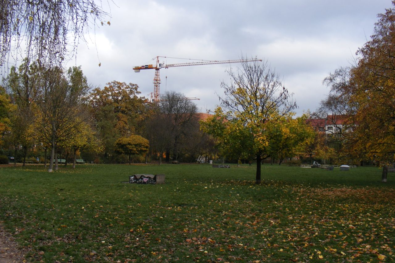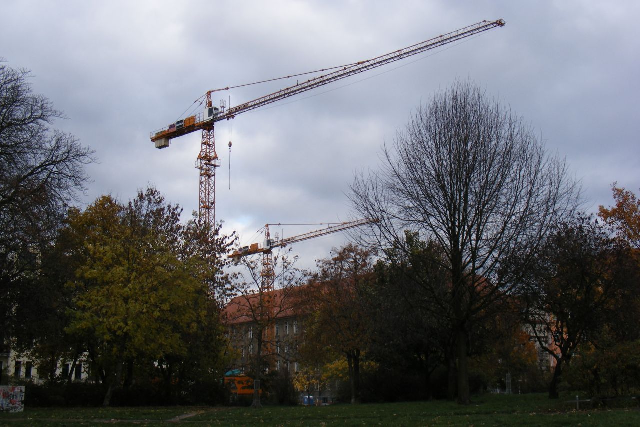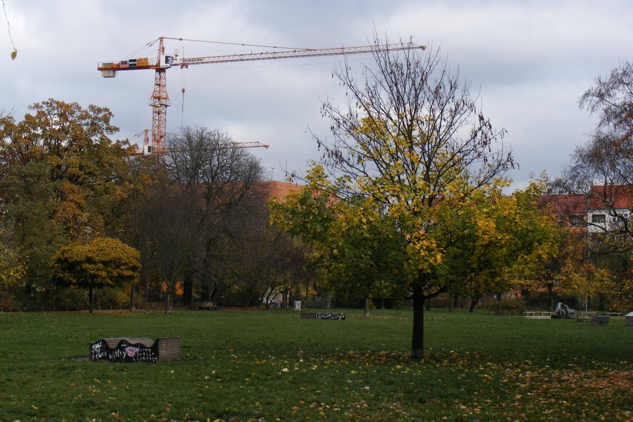 Im Hintergrund kann man die Krane der Baustelle Gleimstraße 50 erkennen. Über die Ankündigung des Bauprojektes in der Gleimstraße 50 und die Grundstücksberäumung in der Gleimstraße 50 habe ich bereits berichtet.